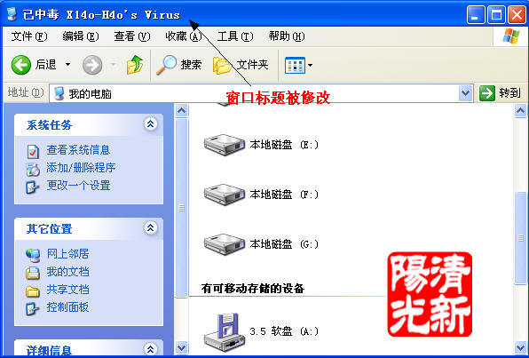 5.病毒运行时,所有窗口标题变为“已中毒,X14o-H4o's Virus”