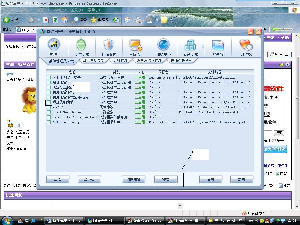 我想问问:瑞星卡卡里的插件如何清理???还有插件里的免疫有什么作用????