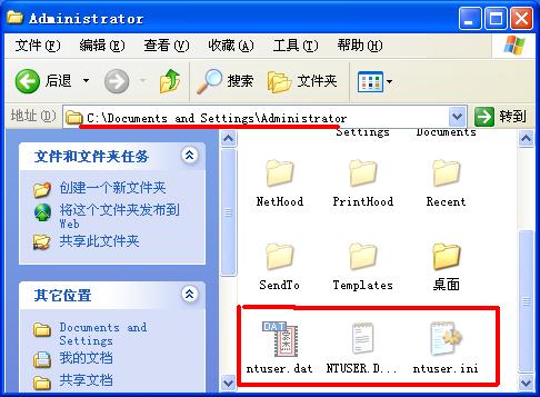 ntuser.ini,ntuser.dat ,ntuser.DAT.LOG这三个文件是系统注册表文件,不能删除。