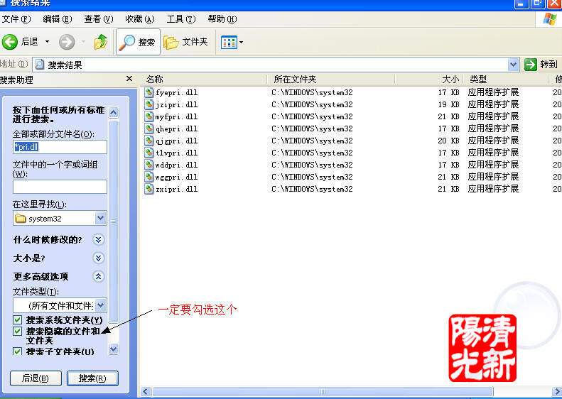 单击菜单栏下方的搜索按钮 全部或部分文件名中 输入*pri.dll