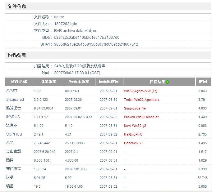 用29个杀软,有7个说是病毒!到底是不是?急大家快来帮帮我