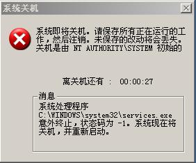 【chxgao的贴子】这几天在使用电脑的时候,总是弹出附件1中的画面,只要点击关闭按钮,计算机就会出现附件2中的提示,然后自动重启,非常象冲击波病毒,但是我把瑞星升级到了最新版本,却查不到病毒,系统是WINDDOW XP2的,打了所有的补丁,还是不行,进程如附件3