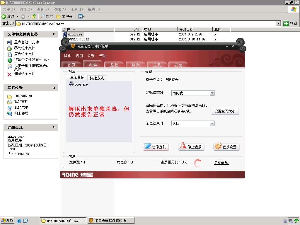 大家可以在baidu上找ddos.exe的相关信息,可是瑞星好象杀不出来,郁闷