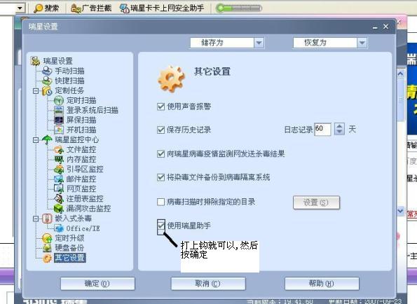 然后杀软里有个详细设置,楼主看一下,我没安所以忘记了!