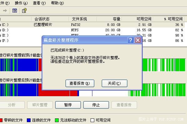 碎片            文件大小        无法进行碎片整理的文件