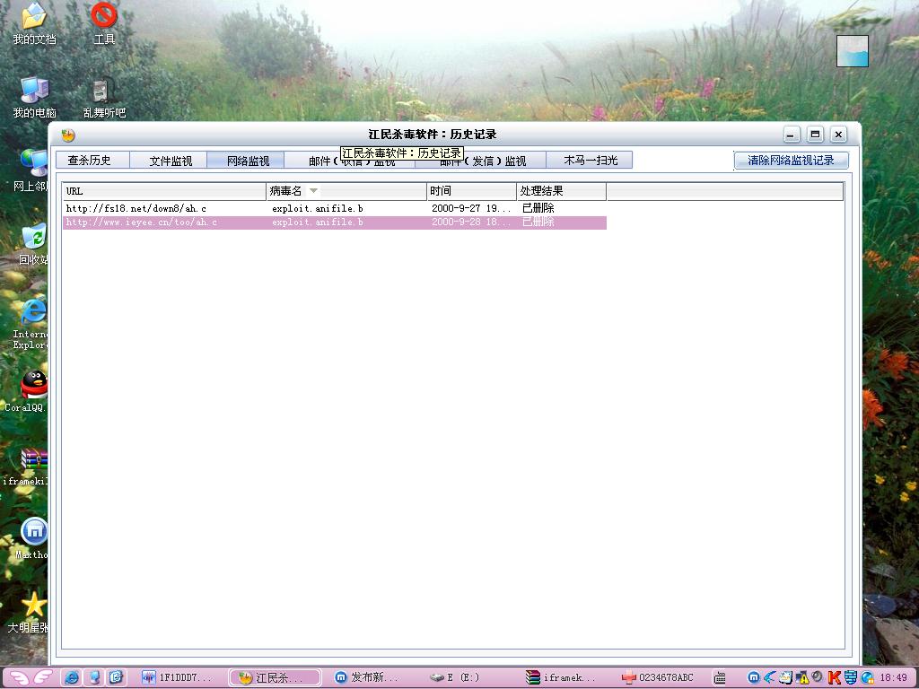 但是现在上网时候莫名其妙的江民提示有网页病毒(我没有打开图中的网站)