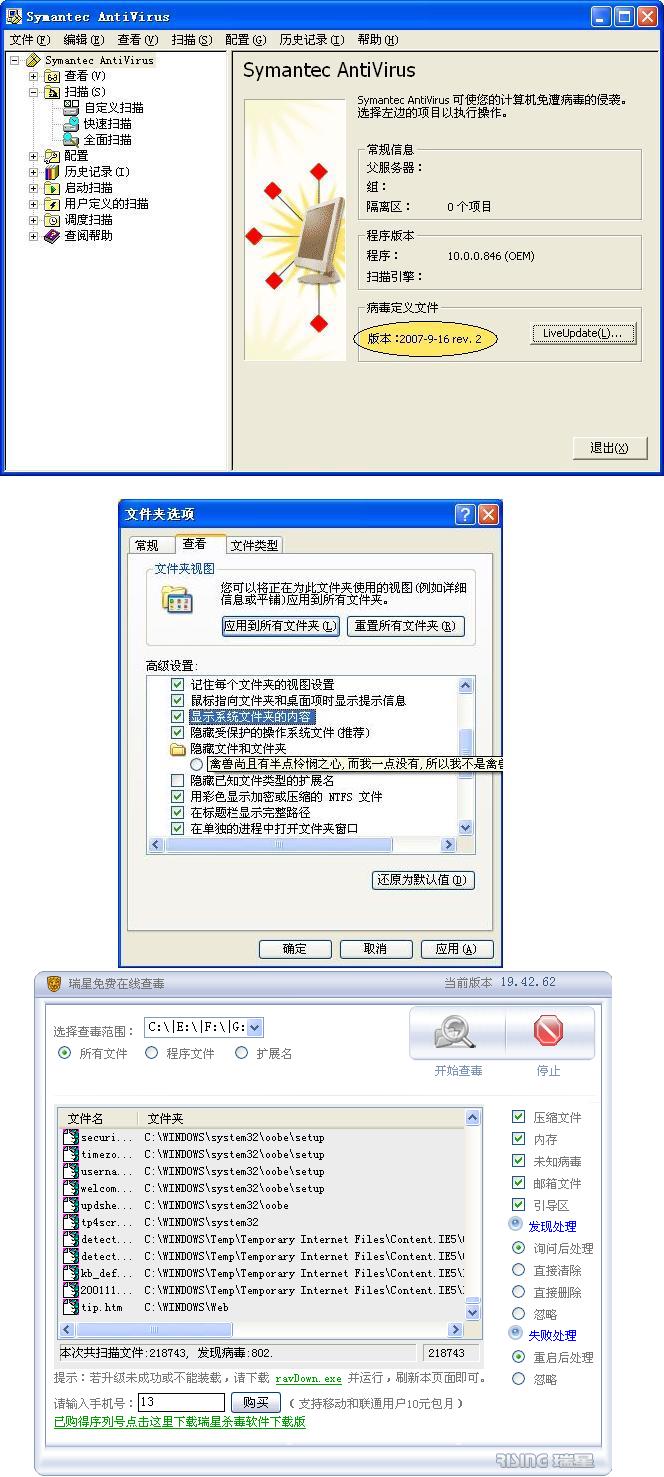 用瑞星在线查毒查出来的这么海量的蠕虫※木马病毒,该死的最新更新过病毒库的诺顿竟然连一个病毒都查不到,气死我了。见图!