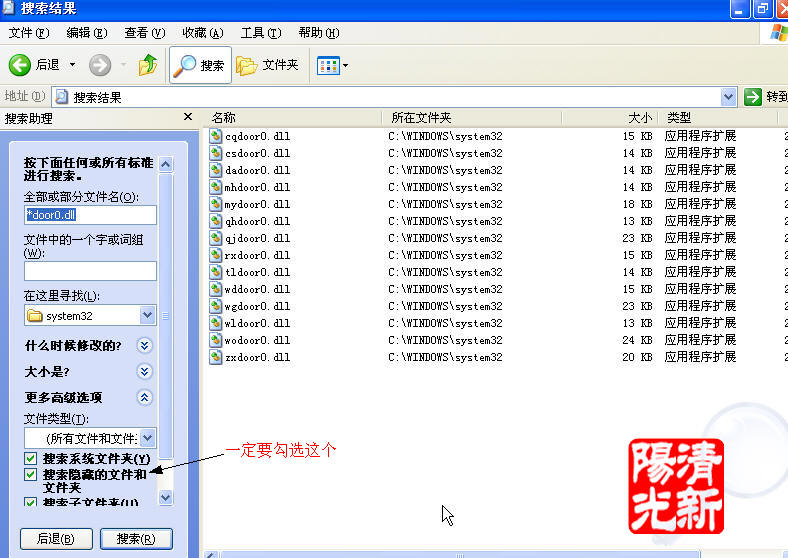 单击菜单栏下方的搜索按钮 全部或部分文件名中 输入*door0.dll