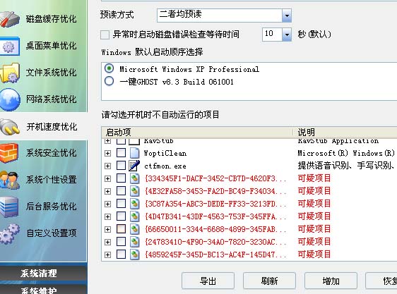 没有一天电脑是干净的,没有一天病毒不改样的,我上网的时候已经特别特别的小心了,我不打开不正规的网站,就这样还不行,我安装的是瑞星,我已经用了5年以上了,但是为什么瑞星升到最新版本后就是检测不出来毒呢,我想请这里的高手帮我解决现在机子里的一个非常烦人的东西,windwos优化大师检测启运项加载,优化不了,一打开网友,瑞星就弹出有毒,问是否,清除、删除,一不小心点错,瑞星就变成红的打不开了,可用瑞星又检测不出来。截图如下: