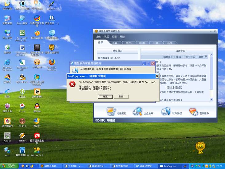 求救……为什么我瑞星一升级就说我应用程序错误?!