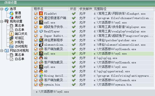 瑞星防火墙-设置-详细设置-访问规则