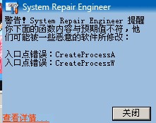 入口点错误:CreateProcessW (危险等级: 高, 被下面模块所HOOK: 0x012521F5)  我修复不掉,一开SREngPS又有了!