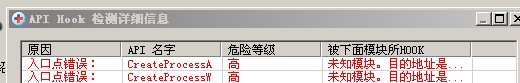 入口点错误:CreateProcessA (危险等级: 高,  被下面模块所HOOK: 0x0125210D)