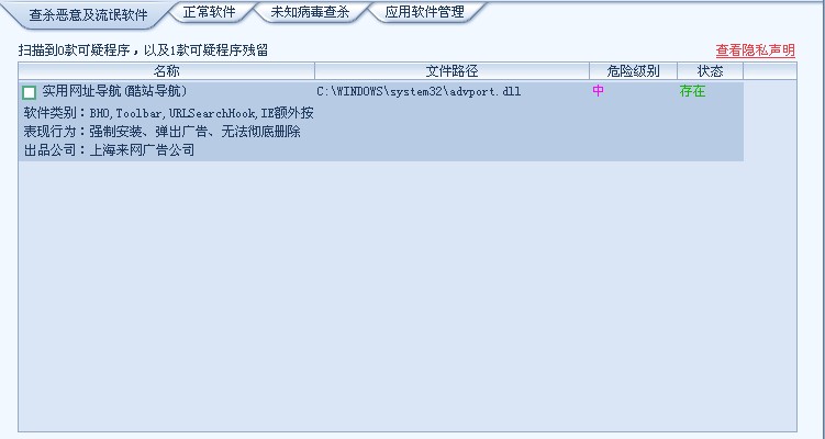 用瑞星卡卡扫描出来的(下图),点击立即清除后,只要电脑重新启动后就又会出现