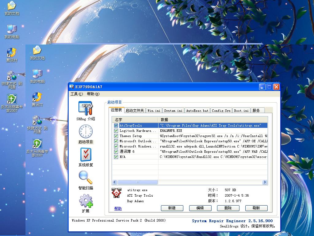 所有的启动项目(包括注册表、启动文件夹、服务等)