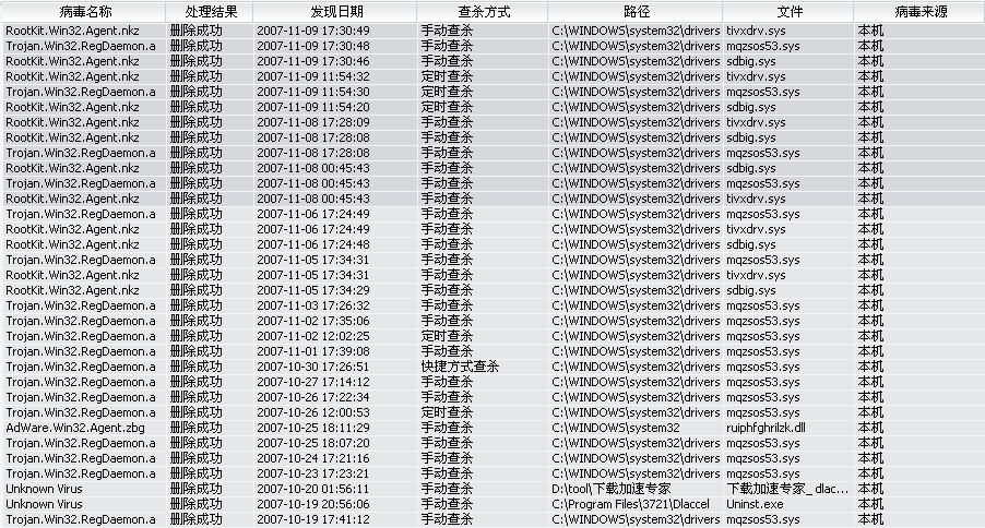 如图所示.上面的病毒天天杀,天天有,郁闷啊.瑞星,搞不定么?