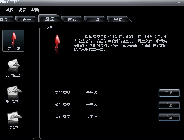 我的监控的绿伞有的,但是安检的时候说监控没有打开,点鉴控的时候出现的是红伞,说我没有安装监控.这个怎么办啊