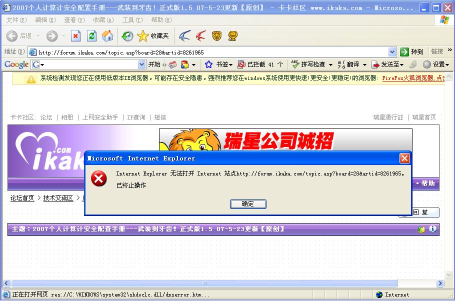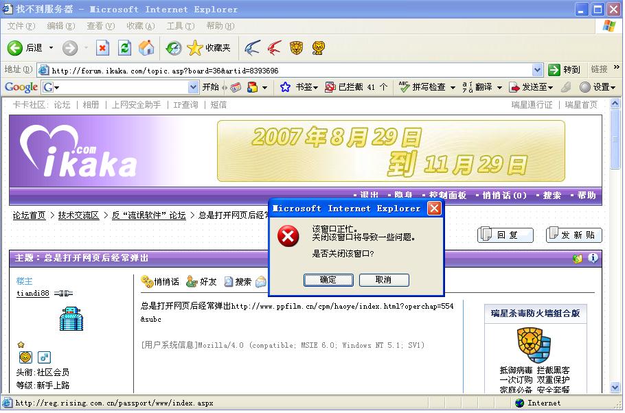 瑞星卡卡安全论坛技术交流区反病毒/反流氓软件论坛 FireFox火狐浏览器 广告病毒症状太严重了,IE都无法使用