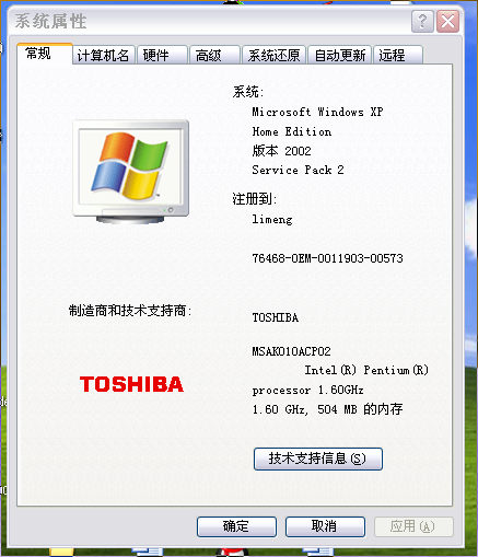 我的机器是 东芝笔记本a80 用的操作系统为xp home sp2