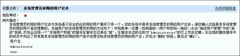设置名称: 系统管理员权限的用户过多 关闭详细信息