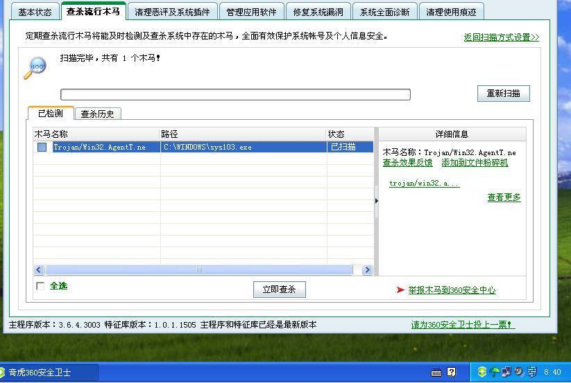 不知道哪个古董级的后勤人员在公司电脑上装的瑞星2008,今天用360查了下木马,竟然查到了,可是电脑上的那个傻瓜狮子这几天一直什么反应都没有