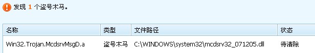 QQ医生一检测就提示有一个木马,清除,重启,再检测还是提示同样的病毒,病毒名称没变,就是文件路径不同