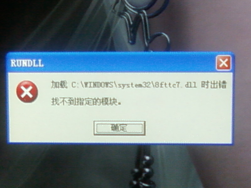昨天晚上杀完毒后就出现在了这样的情况!开机到桌面上出现了 加载c:\windows\system32\8fttc7.dll 时出错找不到指定模块 这有什么办法法吗?我感觉瑞星在乱杀毒