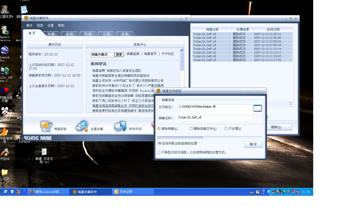 绑定在单机游戏三国无双4上。只要运行游戏瑞星监控就会弹出对话框。杀掉还有。在安全模式下已经用最新版本瑞星和最新版AVG Anti-Spyware杀过了(昨晚半夜杀的)。今天还是有,无奈了只好求助瑞星。病毒有关截屏在附件中。