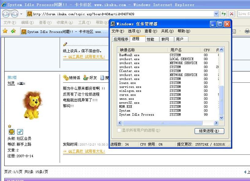 请各位高手看看这个进程system idle process.自从有了这个进程开始!!电脑运行就慢了起来!
