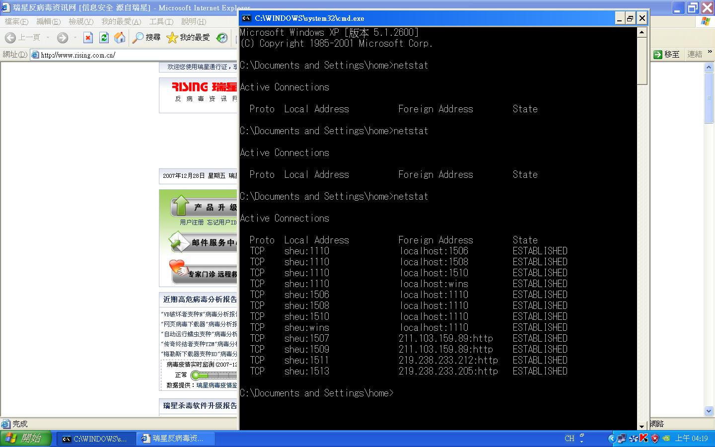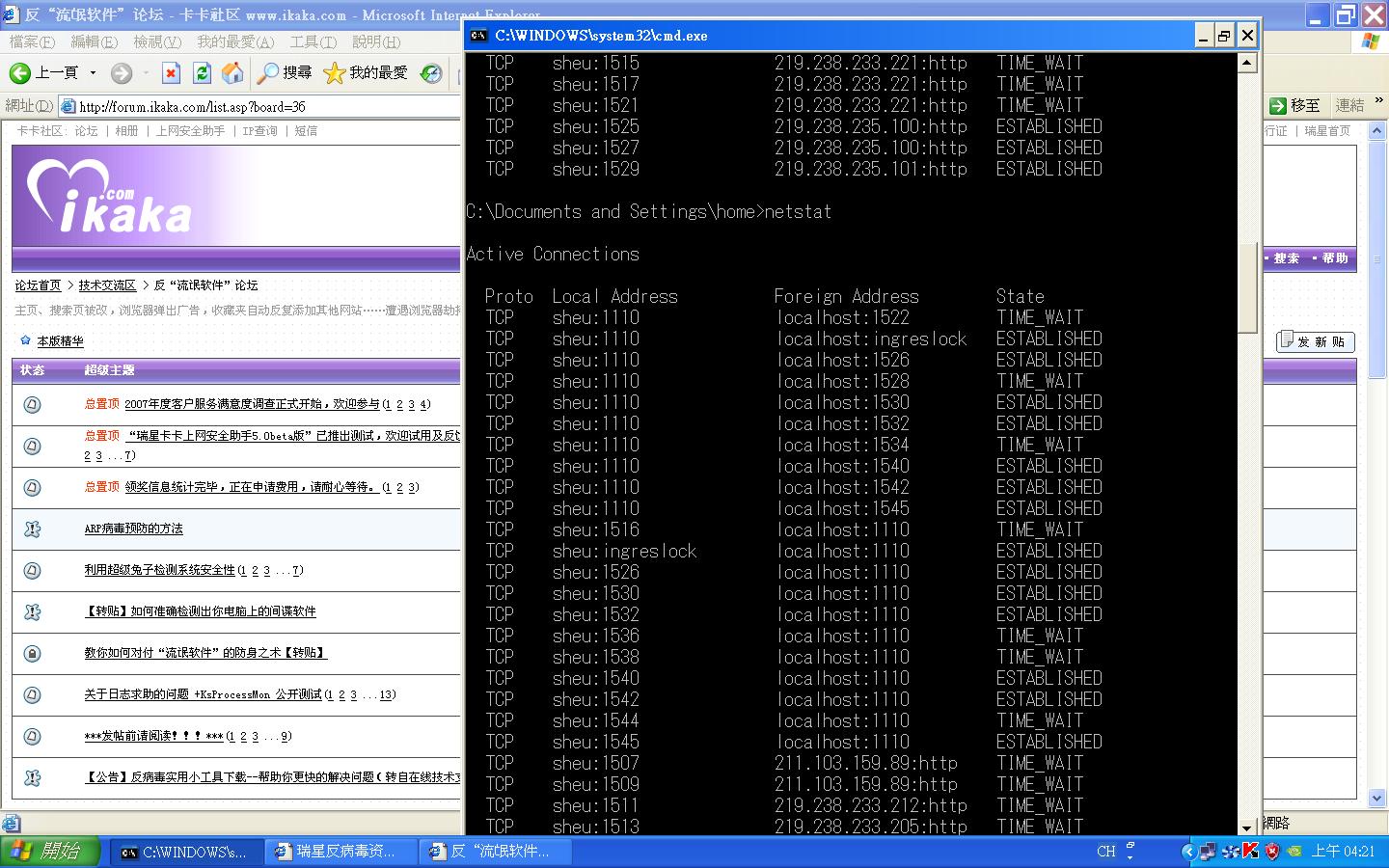 开ie后就跑出一堆奇怪的连线,而且会听见硬盘一直转,这台电脑才买3天,原先同区域网络的另一台,localhost的地方显示007guard.com