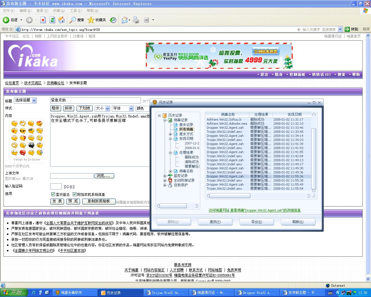 Dropper.Win32.Agent.zah和Trojan.Win32.Undef.amx怎么删除呀,我的瑞星是最新版的,我在安全模式下也杀了,可都是提示要解压缩