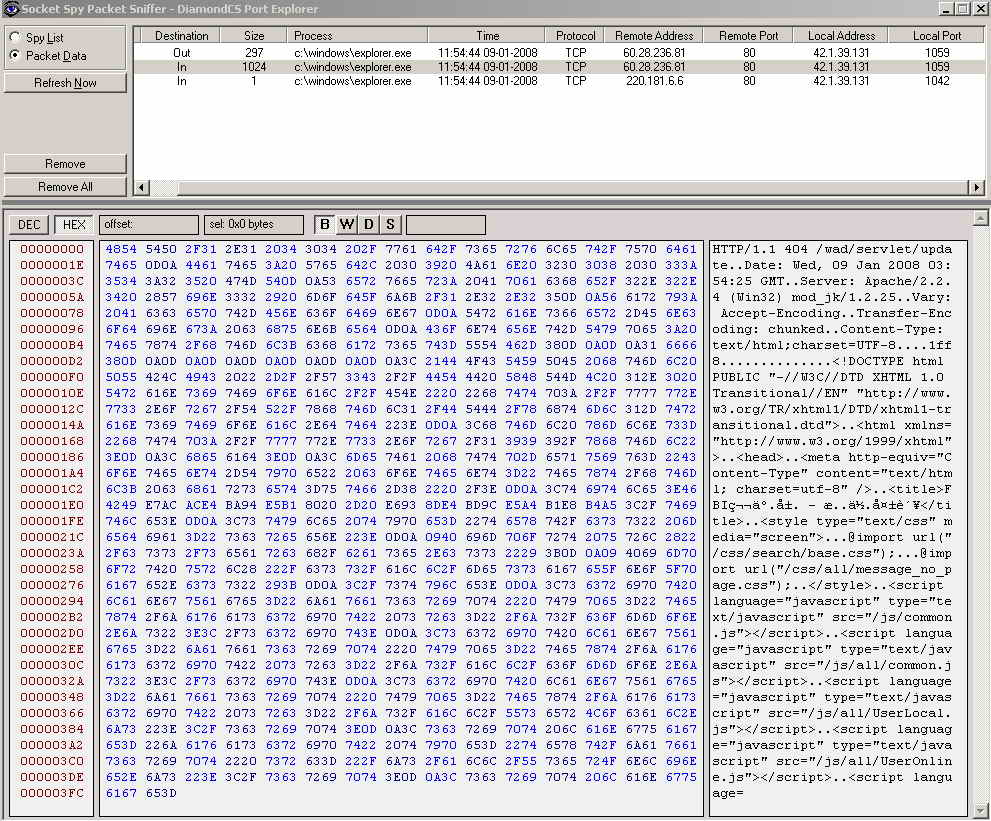 现象:一台XP系统的微机,每隔一分钟explorer.exe自动连接一次60.28.236.*  发送定长的数据包。内容无意义 估计是某病毒的残余。