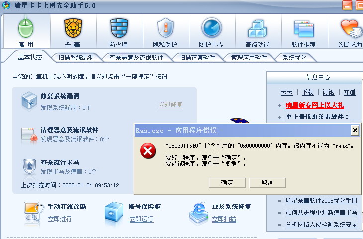 瑞星2009测试版问题反馈