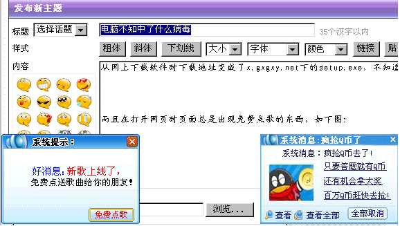而且在打开网页时页面总是出现免费点歌的东西,如下图: