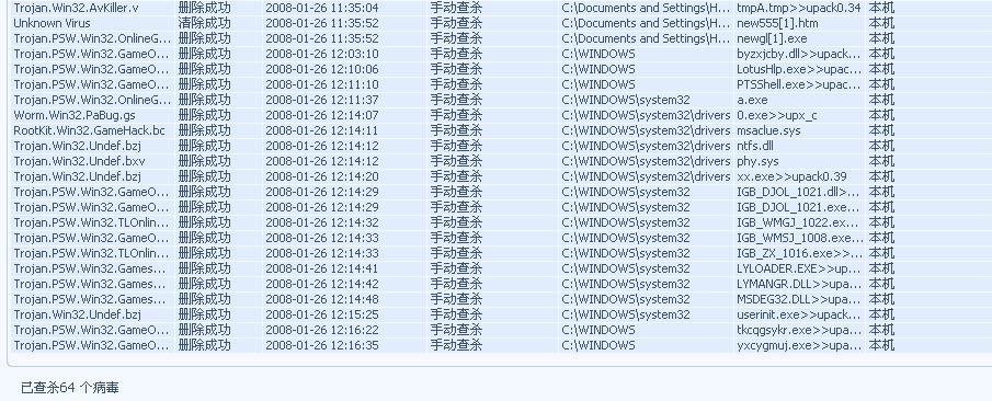 瑞星病毒查杀结果报告