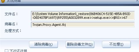 你好,我已经按照你的关闭系统还原了,重启后,全盘杀毒过了,没杀出那个毒来,是不是就表示没有毒了啊,我是不是还要把关闭系统还原前的那个勾去掉啊,谢谢,麻烦了
