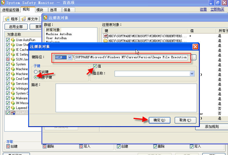 2、找个能看护注册表的工具,守护HKEY_LOCAL_MACHINE\SOFTWARE\Microsoft\Windows NT\CurrentVersion\Image File Execution Options键及其子键(磁碟机删除这个注册表键哦!图2)。