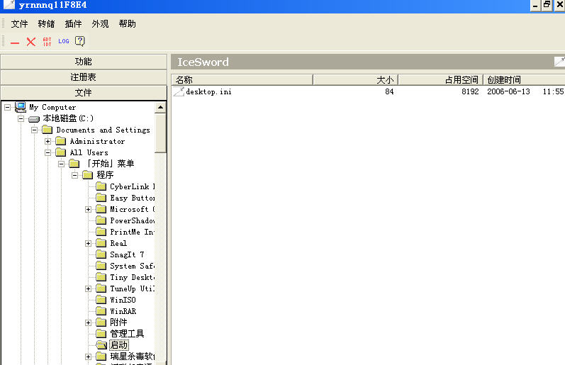 中了磁碟机,系统分区好办些。即使所有常用工具都不能用了,也能用最菜的改名法暂时“废掉系统程序cmd.exe和cacls.exe(去除其后缀;I386、dllcache、system32三个文件夹中的这两个文件的后缀都要去除)。