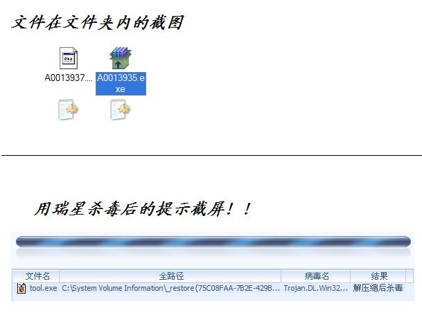 用瑞星查出Trojan.DL.Win32.Mnless.yyd这个病毒,提示处理结果为[需要解压缩后杀毒]。杀了好几遍,此病毒依然存在。安全模式下亦杀不掉!是否可以直接删除A0013935.exe??此文件是否系统文件?大侠来帮忙!