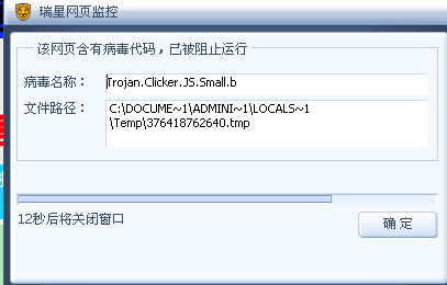 最近瑞星监控总提示发现Trojan.Clicker.JS.Small.b,瑞星和360却查不到也杀不了.按病毒隐藏的路径找到它后一闪就不见了.哪位高手帮帮忙.先谢了.