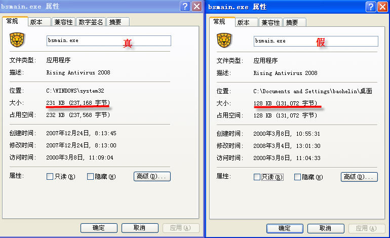 病毒bsmain.exe与正常bsmain.exe的对比(图1)