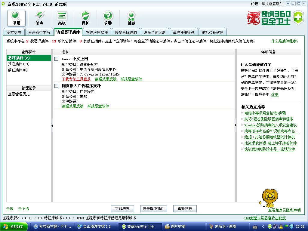 第二个恶意软件无法清理。一清理,蓝屏,重启还有
