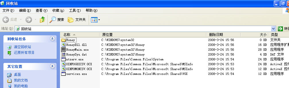 删除:HideFile(指向c:\windows\system32\honey\honeysys.dat)
