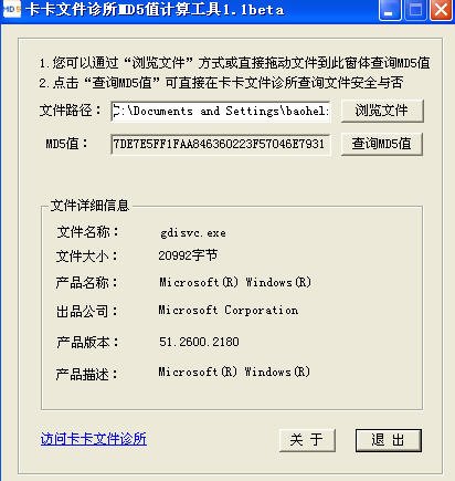 此毒貌似是利用系统某漏洞的DD(MD5见图1)。全补丁系统不会中招。将gdisvc的后缀.jpg改为.exe才能运行。