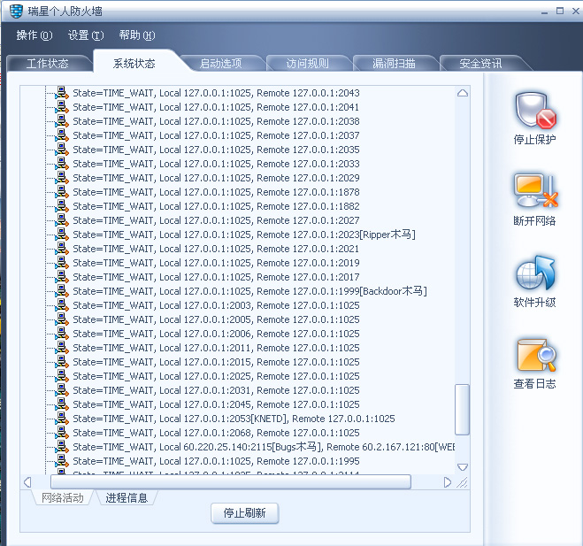 后来发现在浏览网页时,瑞星防火墙的IDLE进程中发现总有一些木马的影子这是怎么回事,用卡卡和瑞星也查不出来,这些木马一会出现一会没有,有各种各样的,发现过:bla木马、rasmin木马、rat木马、ultors恶鹰木马,还有了,有的没记下来。