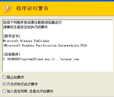 然后我要是点“是”连续几次后 最后一次会出现 而且会在D盘里 生成个什么程序ntuser 这个的应用程序