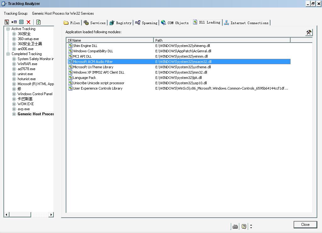 其活动如图:(仅加载一些核心dll,别无其它动作)。(删不掉是正常的)