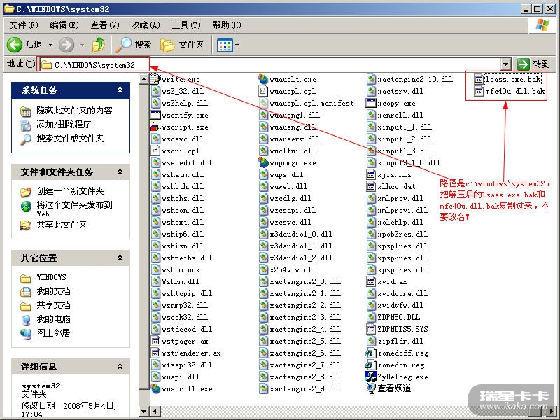 这两个文件我已经改名为lsass.exe.bak和mfc40u.dll.bak