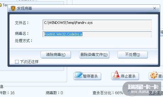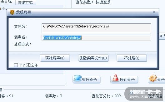 处理结果;瑞星杀毒后重启又出现