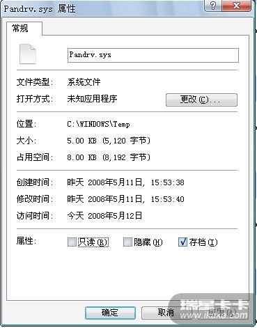 Pandrv.sys在C:\WINDOWS\Temp  大小5kb